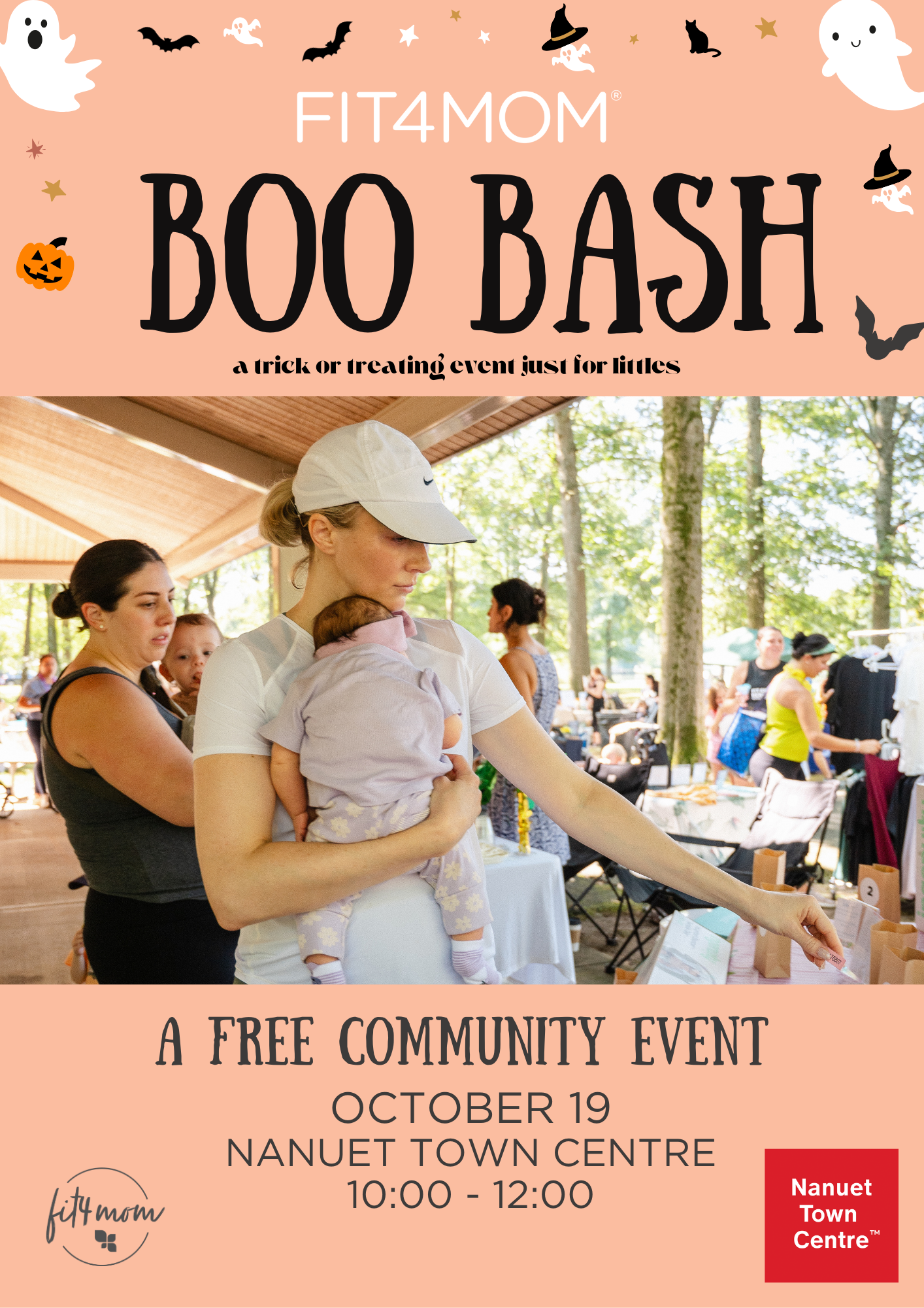 Nanuet Town Centre and FIT4MOM Rockland/Bergen present, Boo Bash Trick-or-Treat! Sunday, Oct. 19, 2025. 10AM-12PM. A spooktacular trick-or-treating adventure made just for little ghouls, goblins, and their families. Enjoy this FREE family event featuring swag bags, music, games, crafts, and MORE! CLICK HERE for more information.