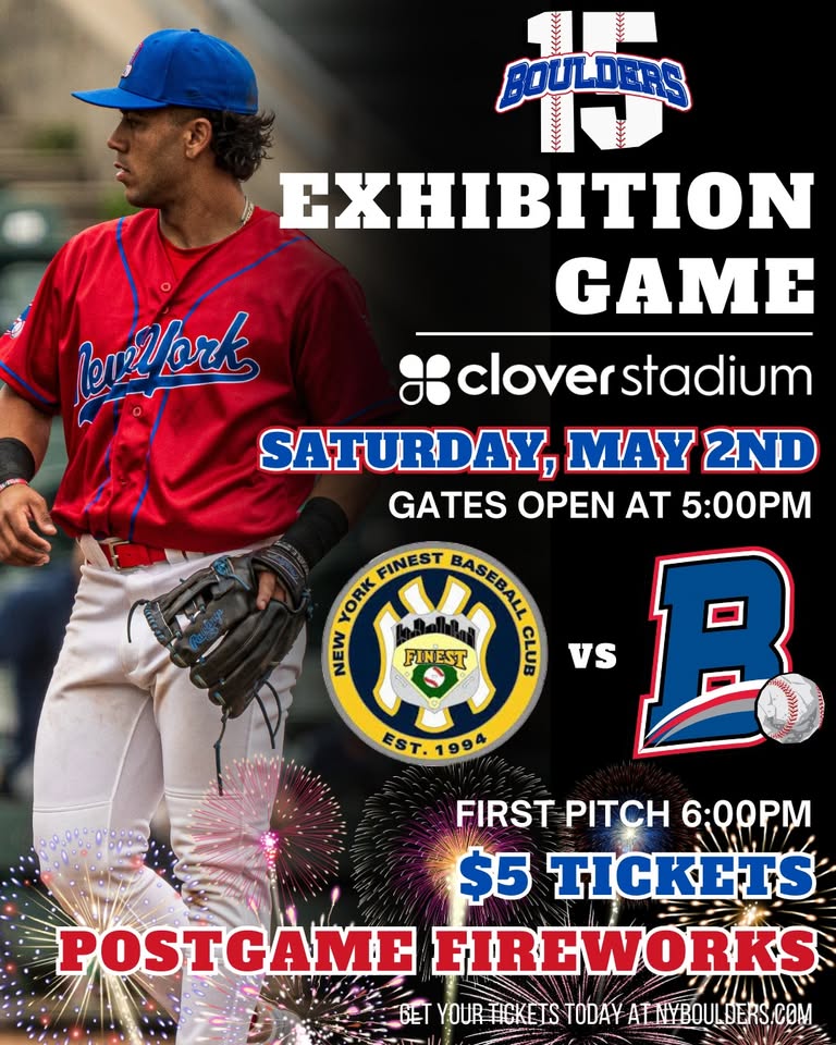 Join the New York Boulders for their annual Exhibition Game on Saturday, May 2, 2026. 5PM. Gates open at 5PM. First pitch at 6:00PM. Watch as the NY Boulders take on the NYPD Baseball Team. Stick around for post-game fireworks! Fun for the whole family! Don't miss out! Get your tickets today! CLICK HERE for […]