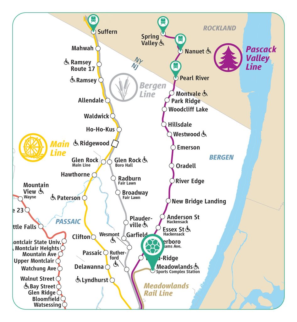Rockland offers four convenient NJ Transit stations: Suffern (Main Line) and Spring Valley, Nanuet, and Pearl River (Pascack Valley Line).