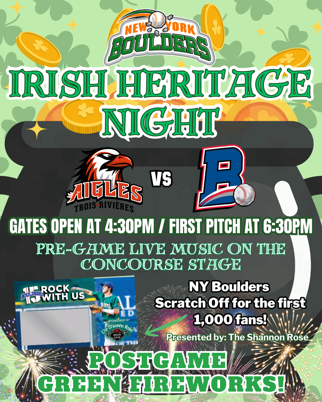 Join us for "Irish Heritage Night at Clover Stadium!" Saturday, May 23, 2026. 6:30PM. Enjoy an exciting game of baseball as the New York Boulders take on the Trois-Rivieres Aigles! […]