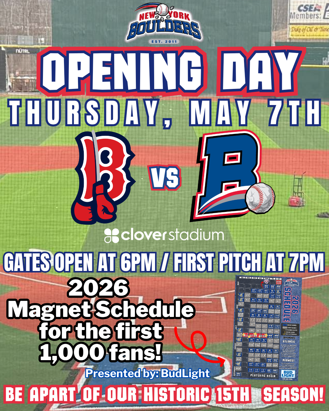 Get ready for an exciting season of baseball! Join us for the NY Boulders' "Opening Day" on Thursday, May 7, 2026! 7PM. Don't miss the New York Boulders as they […]