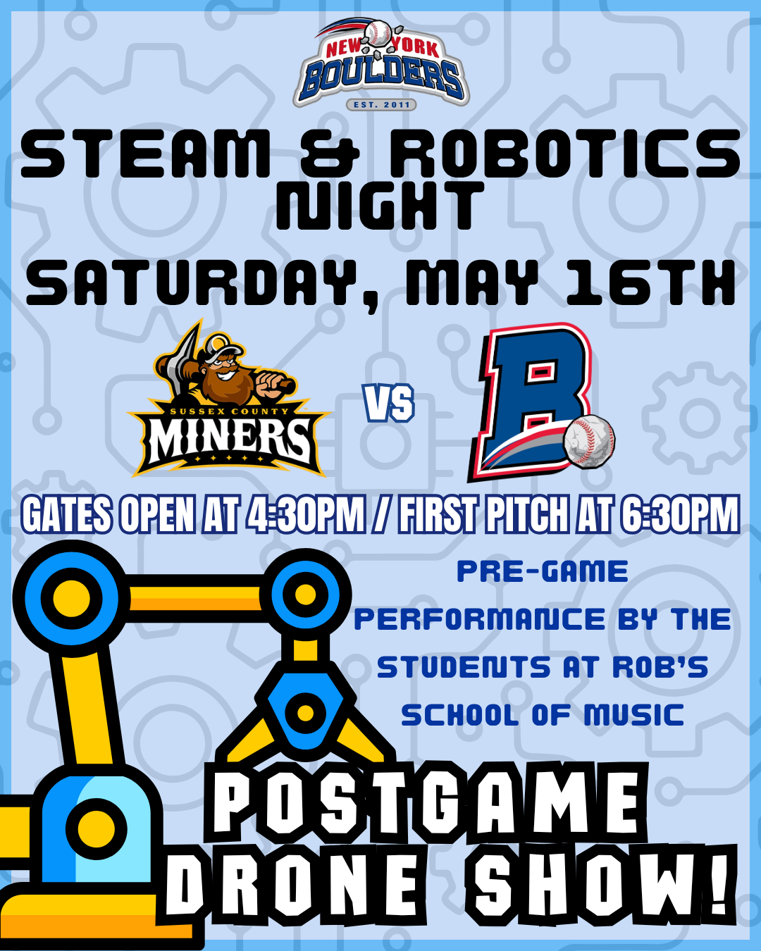 Don't miss the New York Boulders' "STEAM & Robotics Night!" Saturday, May 16, 2026. 6:30PM. Catch an exciting game of baseball as the New York Boulders take on the Sussex […]